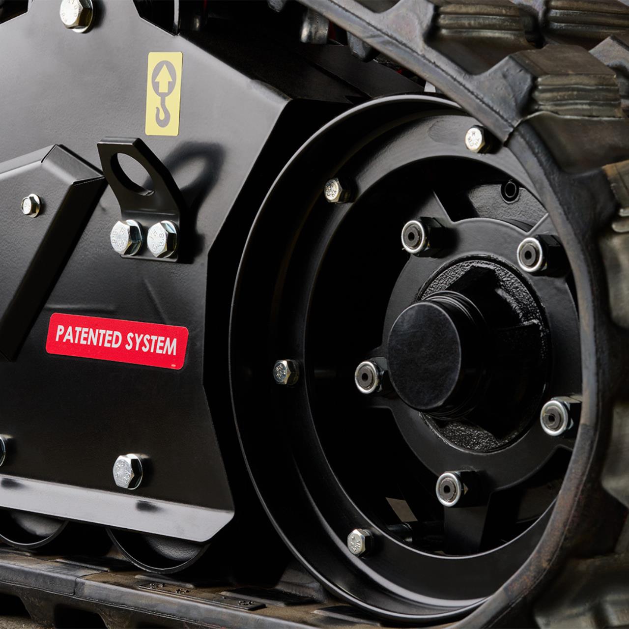 Mit seinem leistungsstarken, 100 cm breiten Schlegelmähwerk, ausgestattet mit 48 robusten Heavy-Duty-Schlegeln und hydraulischer Frontklappe, meistert der THUNDER 100 F FLEX selbst dichtes Gestrüpp und hohes Gras problemlos. Das patentierte Raupen-Verbreiterungssystem ermöglicht eine variable Anpassung der Spurbreite von 110 bis 150 cm, um jederzeit optimale Stabilität und Bodenhaftung zu gewährleisten. Ein einzigartiges Sicherheitssystem verhindert effektiv ein Abrutschen der Raupen – selbst bei extremen Hanglagen.