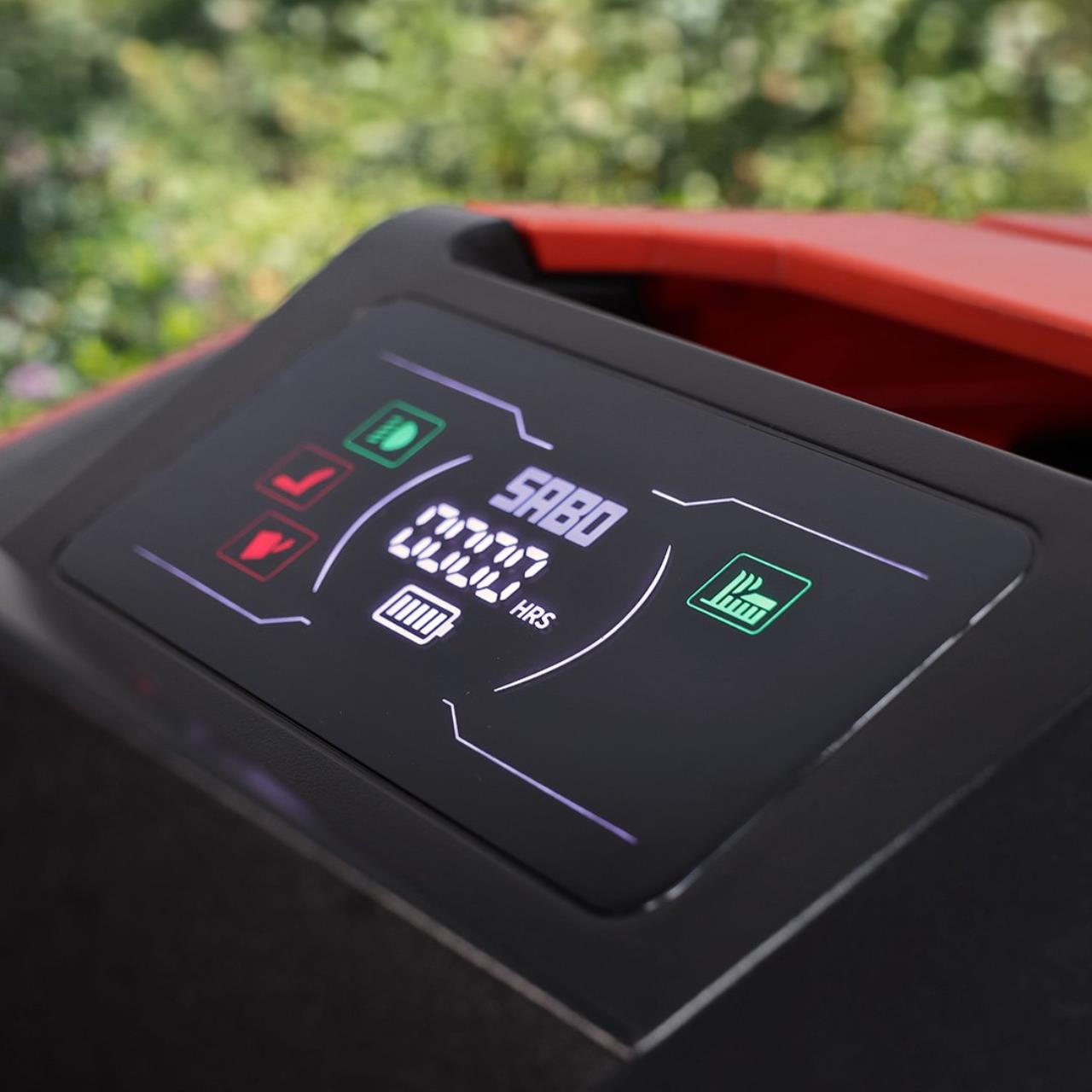 Eine umfangreiche Serienausstattung sorgt für hohen Bedienkomfort: Das digitale Display liefert alle wichtigen Betriebsinformationen auf einen Blick. LED-Scheinwerfer mit Lichtautomatik gewährleisten gute Sicht bei Dämmerung und wechselnden Lichtverhältnissen. Der ergonomisch geformte Premium-Sitz bietet ausgeprägten Rücken- und Seitenhalt und unterstützt eine angenehme Sitzposition. Praktische Details wie ein Getränkehalter, eine Stoßstange und eine Anhängerkupplung machen den 98-S besonders alltagstauglich. Die zentrale, 6-stufige Schnitthöheneinstellung lässt sich bequem direkt vom Bedienerplatz aus bedienen, was schnelle Anpassungen ohne Unterbrechung ermöglicht.